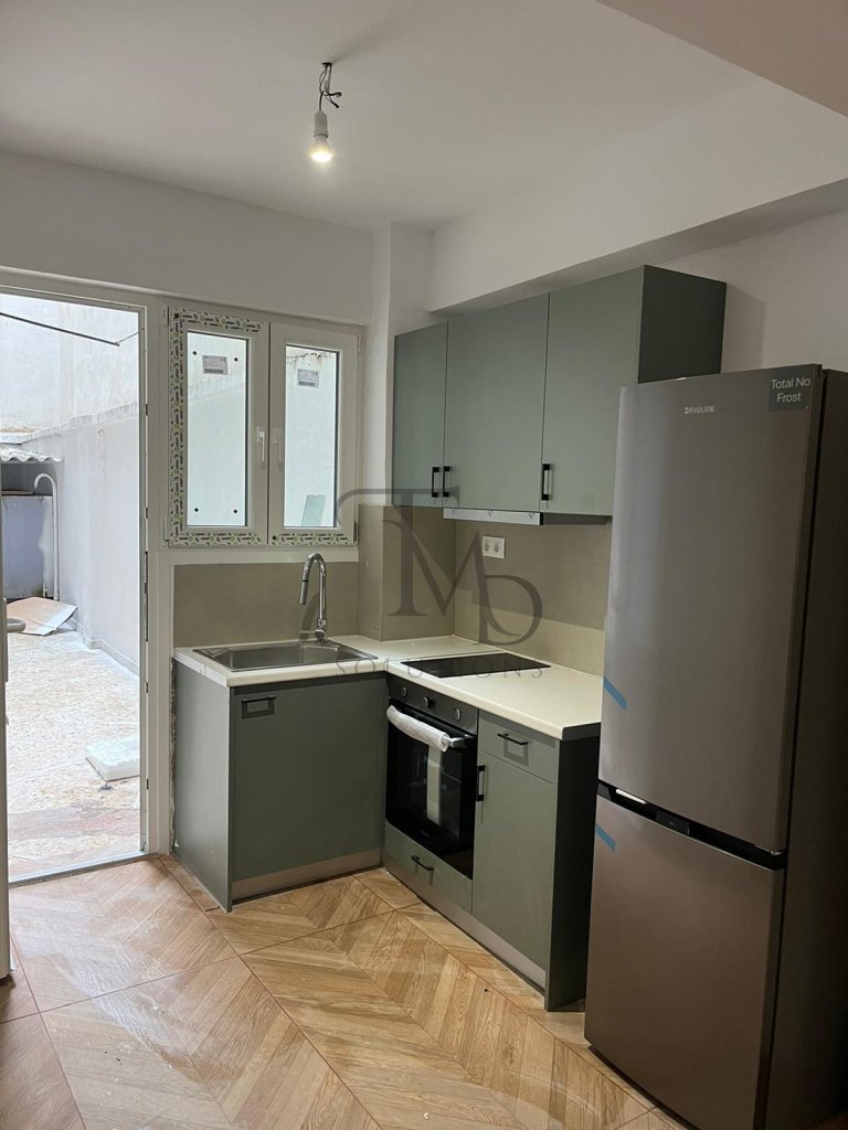 Fully renovated 50 sq.m. apartment on a semi-basement level, with access to a private yard.